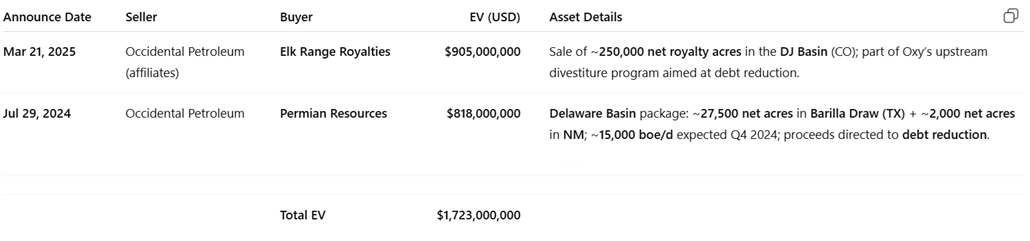 The OxyChem sale would follow a series of significant upstream and mineral divestments: