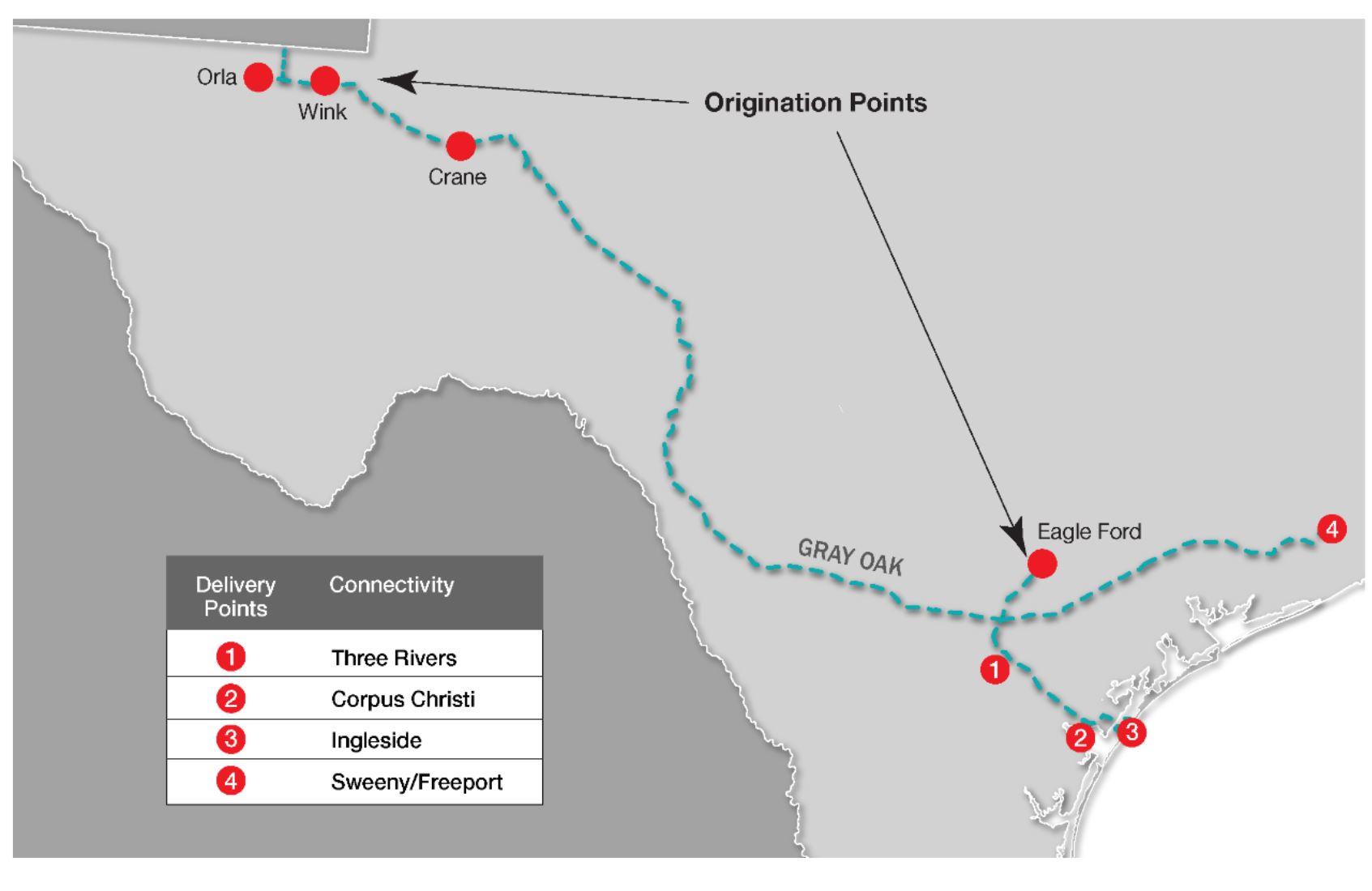 "The Grey Oak pipeline will provide 900,000 barrels a day of crude oil transportation from the Permian and the Eagle Ford to Texas Gulf Coast destinations, including our Sweeney refinery. The project is supported by shipper commitments, and is on-schedule to be in service by the end of this year. Phillips 66 Partners is the operator and the largest owner."