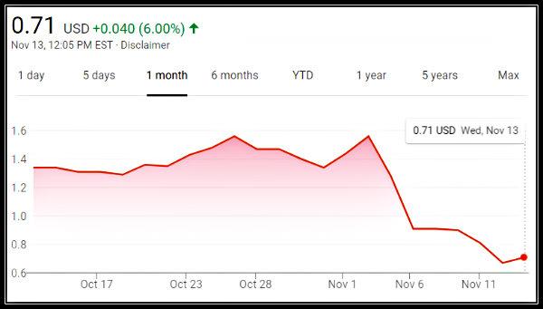 While NGP didn't provide details on the distrubution, this move has caused Chesapeake's stock to plummet to below $1.00 (see chart below).