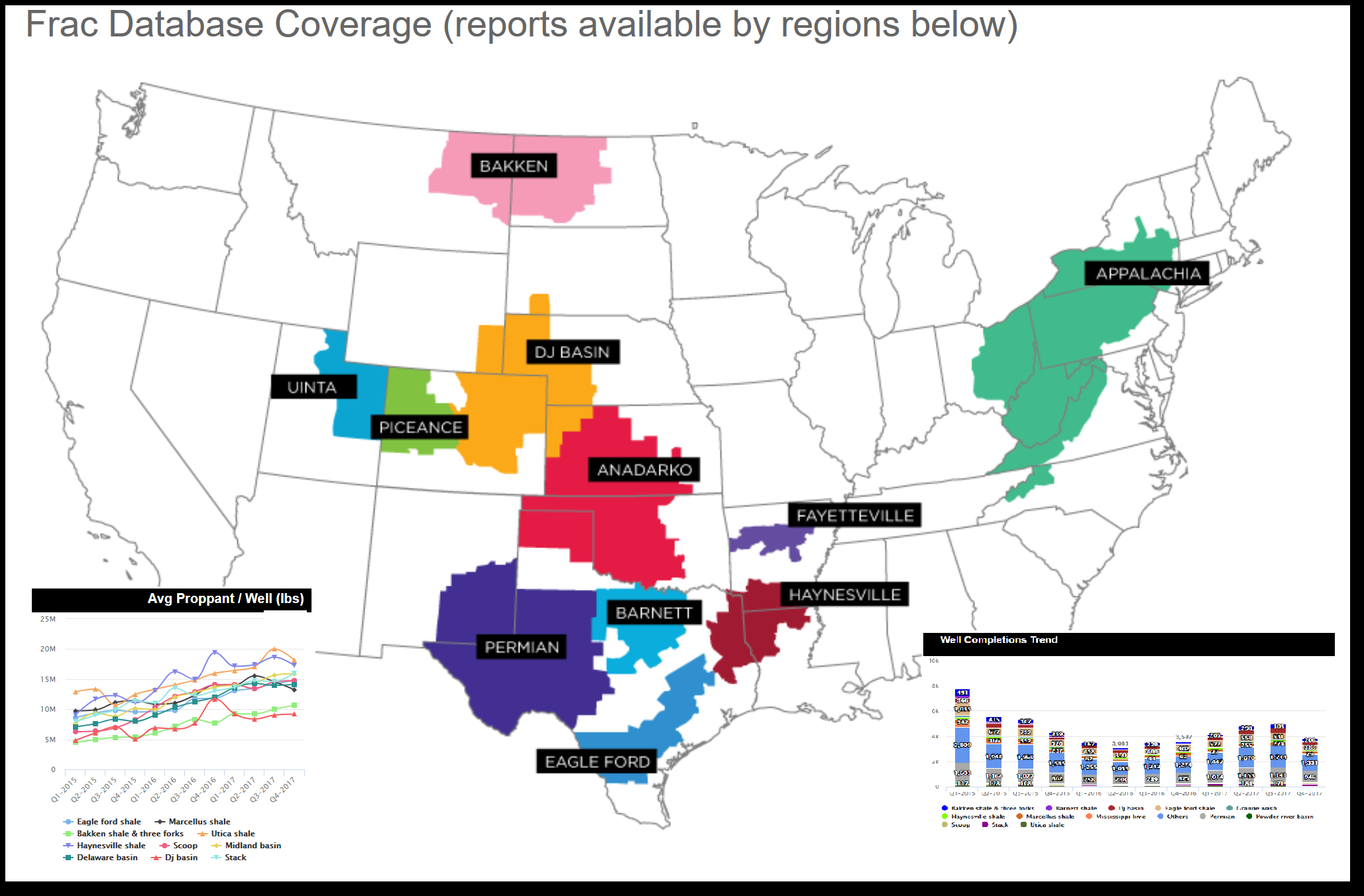 Frac Database is one of the largest proprietary database of more than 168,100 wells frac'd in the US between June, 2010 and December 20, 2017. As companies retreat to the sweetspot, completion designs are changing, find out how your competitor is frac'ing their wells, what kind of fluid system and volume and type of proppant used.